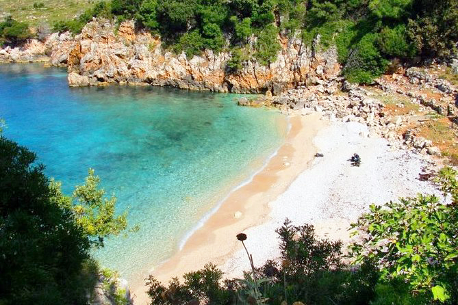 English Bay (Gjiri Anglezit) in Karaburun near Vlora — turquoise cove with soft sand and cliffs